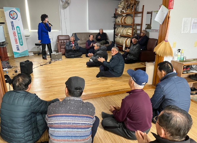 ![]() 강진군보건소가 찾아가는 경로당 금연·절주교육을 실시하고 있는 모습 |