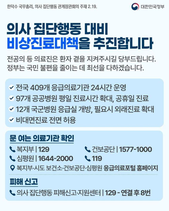 의사 집단행동 피해신고·지원센터 ☎129 - 연결 후 8번