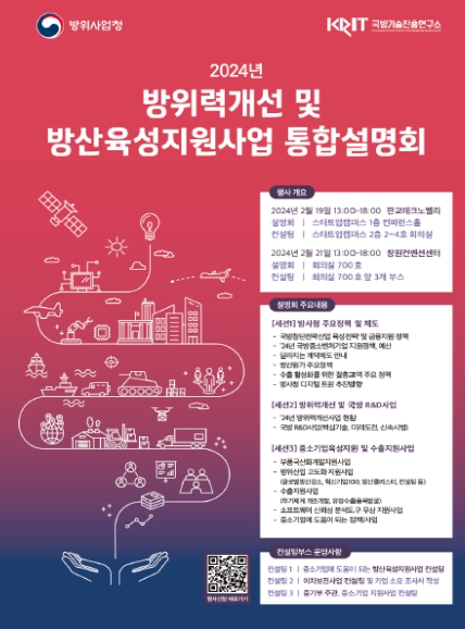 올해 통합설명회는 기존의 중소․벤처기업 육성 정책과 지원 사업 설명회를 확대하여 무기체계 방위력개선 사업, 핵심기술사업, 원가제도, 계약제도, 절충교역, 수출 지원 사업 등 2024년 달라지는 방위사업청의 주요 정책‧제도‧사업에 대한 설명도 함께 진행함으로써 기업들이 관심을 가지는 대부분의 정보를 한 자리에서 얻을 수 있도록 했다.
