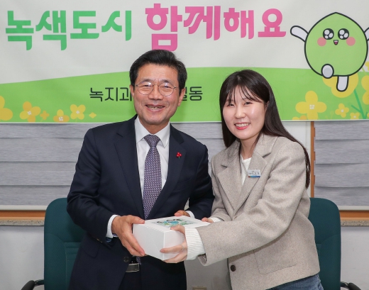 정인화 시장은 시민들이 건강하고 행복한 삶을 누릴 수 있도록 쾌적한 도심 속 녹지공간을 확대하는 일에 헌신하는 녹지과를 방문해 간식을 나눠주며 직원들에게 격려와 응원의 뜻을 전했다.