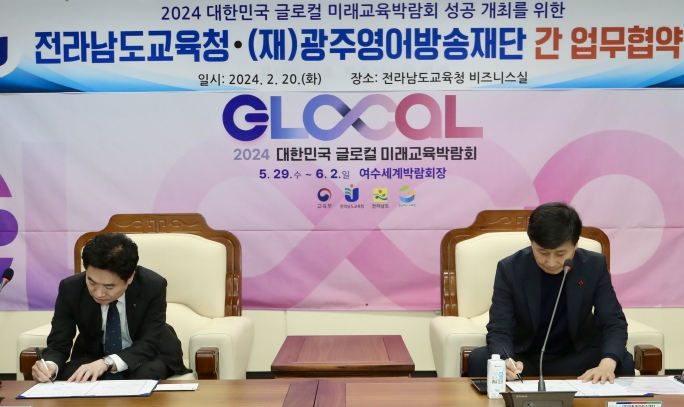 김대중 교육감과 김휘 사장이 서명한 협약서에서 두 기관은 오는 5월 여수에서 열리는‘2024 대한민국 글로컬 미래교육 박람회’의 성공적인 개최와 선진 교육 콘텐츠의 세계화 추진에 상호 협력하기로 합의했다.