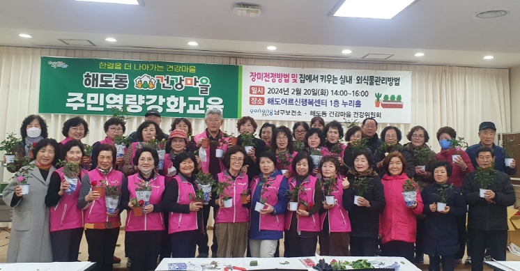 이분남 건강관리과장은 “주민 중심의 주민 역량 강화를 통해 주민 스스로 건강 문제를 해결할 수 있는 지속가능한 마을을 만들어 가는 데 도움이 되는 교육이길 바라며, 앞으로 남은 사업기간 동안 해도동 건강위원회를 중심으로 건강한 마을을 가꿔가기 바란다“고 말했다.