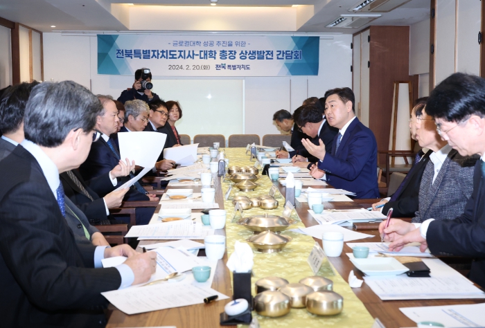 전북자치도에 따르면 김관영 도지사는 20일 도내 대학 총장들과 2024년 글로컬대학 공모 대응을 위한 소통 간담회를 열었다고 밝혔다.