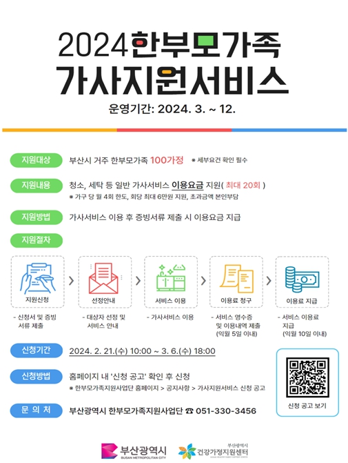 ![]() 한부모가족 가사서비스 지원 대폭 확대! |