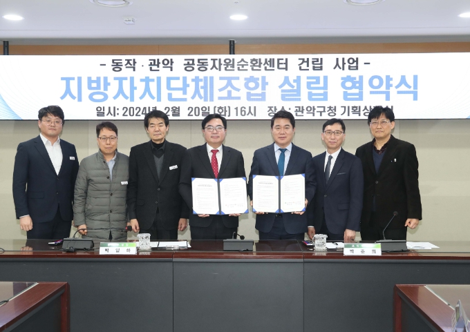이번에 체결한 설립협약은 서울시 최초로 공동자원순환센터 건립 전담기구인 지방자치단체 조합을 설립하고 사업추진에 박차를 가하기 위한 것으로, 박준희 관악구청장과 박일하 동작구청장을 비롯한 양 기관 관계자가 참석한 가운데 진행됐다.