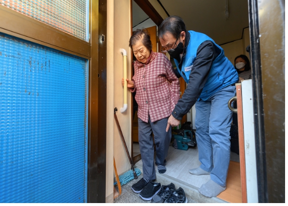 ![]() 양천구 안심주거환경 개선사업을 통해 안전손잡이가 설치된 어르신 댁 전경 |