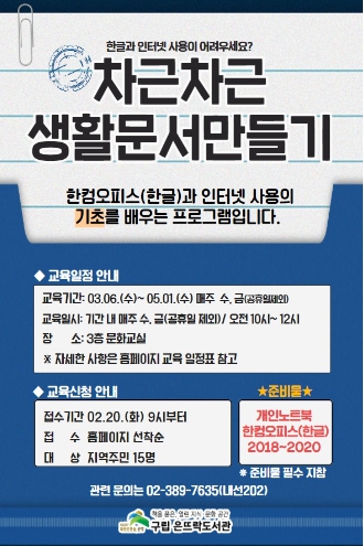 ‘차근차근 생활문서 만들기’는 한컴오피스(한글)과 인터넷 사용의 기초를 배우는 프로그램이다.