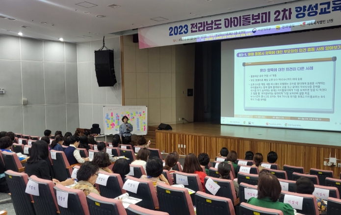 전남도는 아이돌보미 희망자를 대상으로 연간 100여 명의 양성교육을 실시하고, 활동 중인 아이돌보미를 대상으로 매년 1천여 명의 보수교육을 하는 등 전문성 강화와 돌봄 인력 양성에 노력하고 있다.