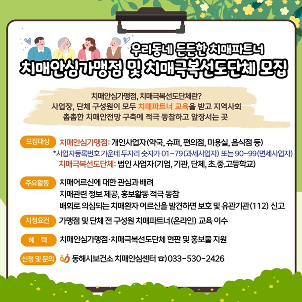 ![]() 치매안심가맹점 및 치매극복선도단체 모집 안내문 |
