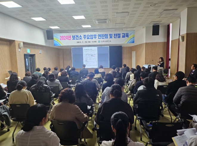 ![]() 나주시보건소가 전 직원들을 대상으로 ‘2024년 보건소 주요사업 설명회’를 개최했다.(사진제공-나주시) |
