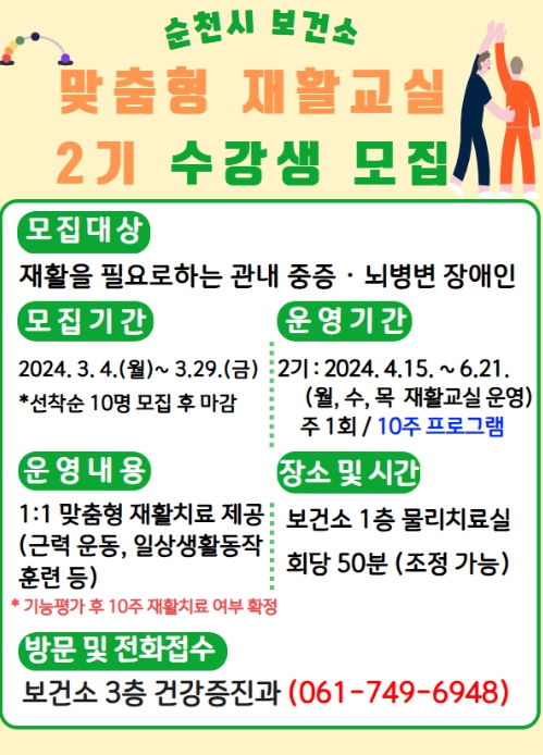 ![]() 순천시, 장애인 대상 1:1 재활 운동 서비스 |