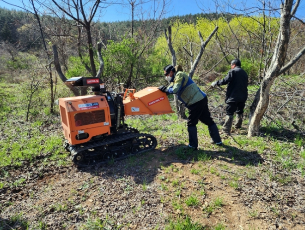군은 산불로부터 군민들의 소중한 생명과 재산을 지키고 아름다운 자연과 산림을 보호하기 위해 파쇄기를 통한 영농부산물 처리를 돕고 있다.