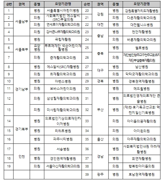 ![]() 제2기 어린이 재활의료기관 선정기관 목록 |