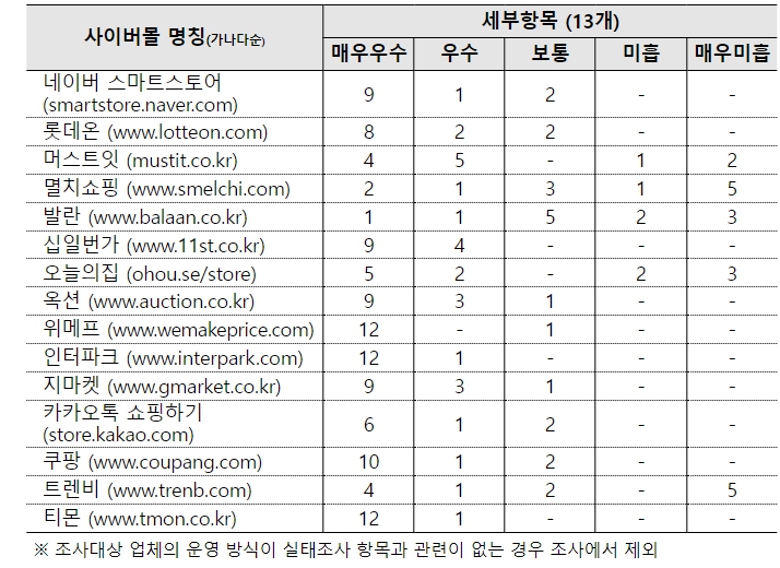 관세청은 이번 실태조사 결과, 대부분의 오픈마켓들이 각 조사 항목에서 ‘우수’ 수준 이상의 소비자 보호 시스템을 갖추고 있는 것을 확인했다.
