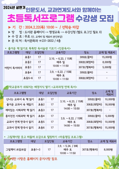 ![]() 2024년 상반기 유아·초등 평생교육 프로그램 수강생 모집 |