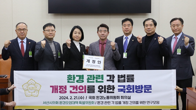 한석화 환경특위 위원장은 “서산시의 환경오염 문제의식을 공유한 서산시의회의 의원들은 정확한 내용을 파악하여 시민의 알권리와 재발방지대책 등을 도모하고자 환경특위를 설치했으며, 환경 관련 법령을 분석하여 미비점 및 문제점을 파악하고 개선방안을 모색하고자 환경법 및 환경소송 전문가들로 구성된 ‘서산시 환경오염 방지를 위한 법․제도 개선 방안 연구모임’(대표 문수기 의원)을 발족했다.”며 “지방자치단체가 환경오염 피해 발생 시 신속하게 대응하여 지역주민의 신뢰를 얻을 수 있도록 환경법률을 하루 빨리 개정해 주시기를 강력히 건의드린다.”고 호소했다.