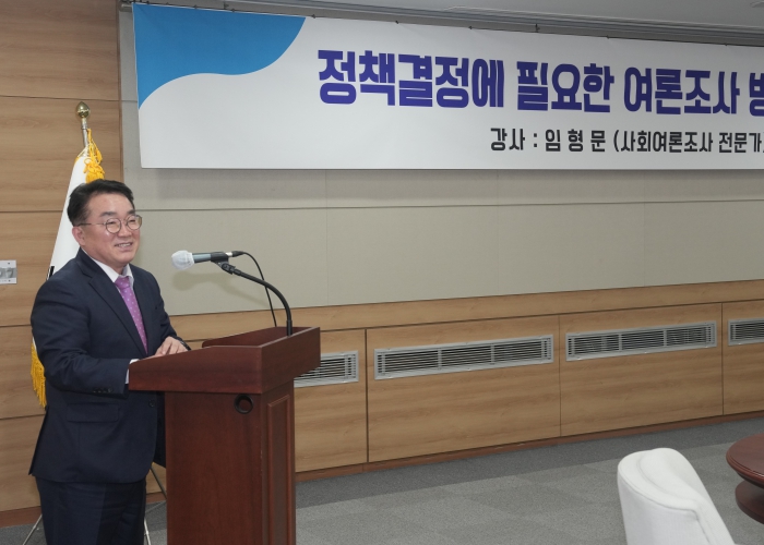 강사로 나선 임형문 ㈜폴인사이트 대표는 “정책결정에 필요한 여론조사 방법과 활용”을 주제로 여론조사의 개념과 필요성, 기법 및 사후활용 방안 등을 사례 중심으로 강연했다.