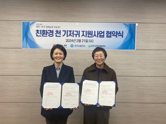 전주시보건소는 21일 ‘친환경 천 기저귀 지원사업’의 성공적인 사업 추진을 위해 사업 수행기관인 전주지역자활센터와 업무 협약을 체결했다.