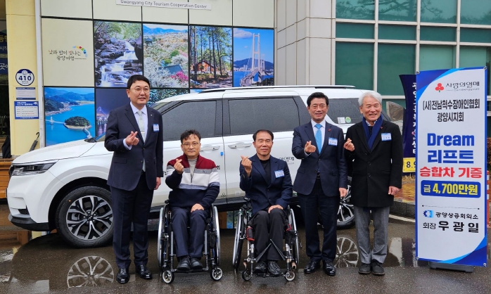 전달된 차량은 휠체어 리프트가 장착된 장애인 차량으로 지난해 11월 우광일 회장이 전남사회복지공동모금회에 차량 가액 4,700만 원을 지정 기탁해 구입했다.