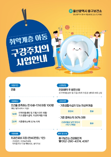 이현주 중구보건소장은 “아동·청소년기 구강 관리는 평생의 치아 건강을 좌우할 만큼 중요하다”며 “앞으로도 다양한 구강보건 사업을 적극 추진하며 소득 격차에 따른 구강 건강 불평등을 해소하기 위해 노력하겠다”고 밝혔다.