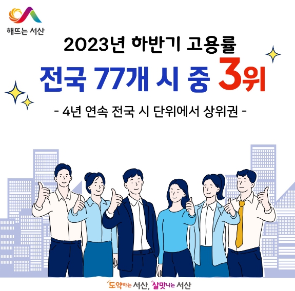 ![]() 2023년 하반기 시 단위 고용률 서산시 3위 달성 홍보물 |