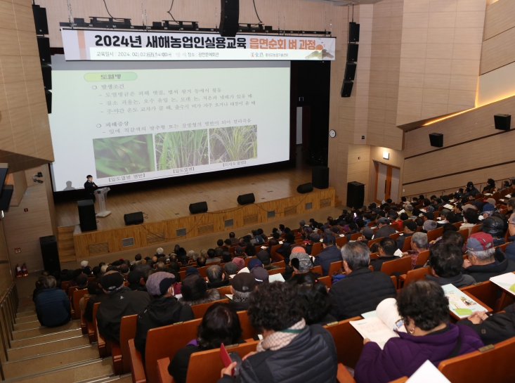 새해농업인 실용교육은 1969년 겨울농민교육으로 시작하여 2010년부터 현재까지 새해농업인실용교육으로 변경되어 추진되고 있으며, 올해는 농업기술센터 통합교육과 읍면 순회교육을 총 25회 걸쳐 진행했다.