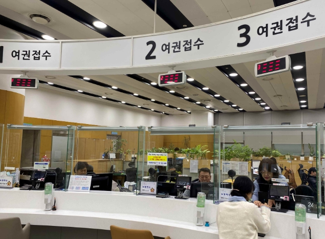 ![]() 관악구청 민원실 직원이 여권접수 민원을 처리하고 있다 |