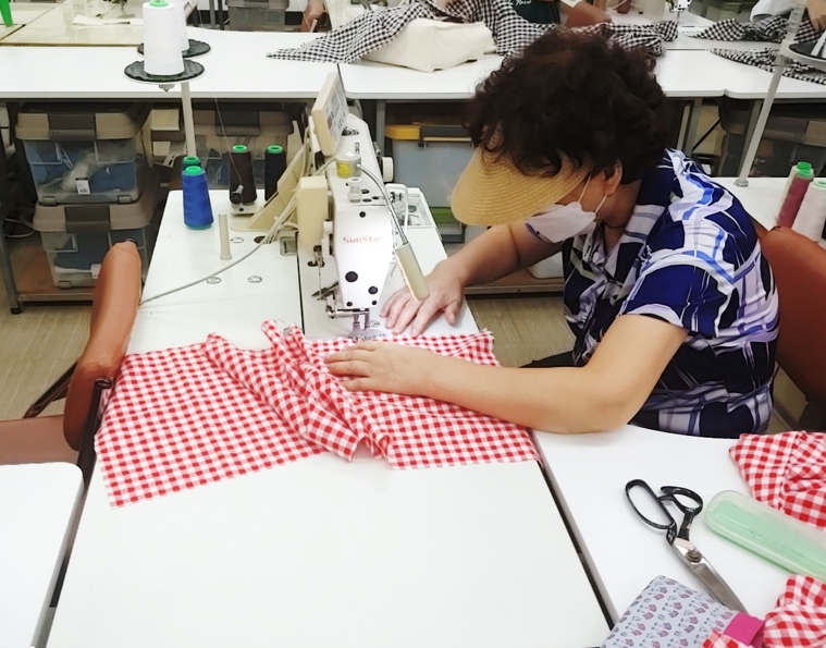 ![]() 강북봉제지원센터 봉제교육에 참가한 수강생이 재봉틀을 이용해 박음질 실습을 하고 있다 |