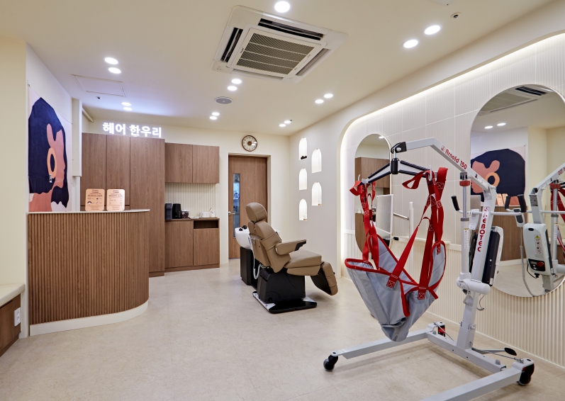 ‘헤어 한우리’에서 근무 중인 미용사 정은주 씨는 “휠체어 이용 방문객 중 미용실에서 샴푸를 받은 경험이 없는 분들이 대부분이다.”며 “헤어 한우리에는 일체형 삼푸대를 이용해 커트와 샴푸를 한자리에서 할 수 있어 장애인과 보호자가 만족해한다.”고 말했다.