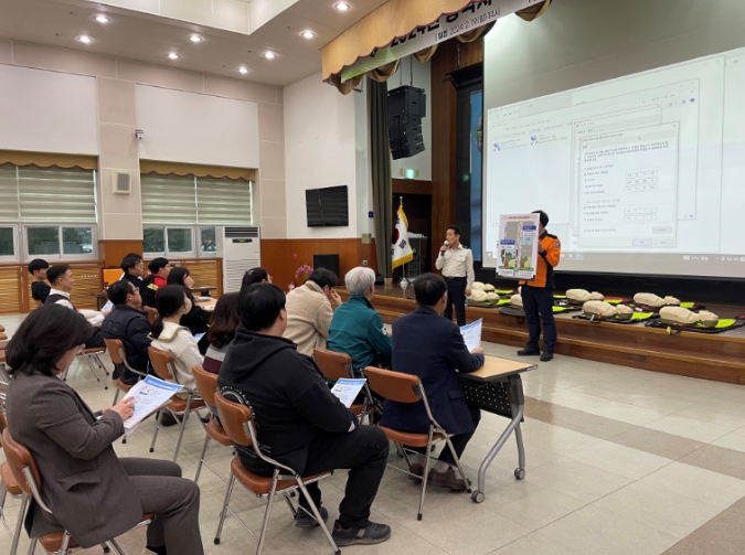 심폐소생술 및 응급처치 교육은 방문 민원인 또는 직원이 급성심장정지 등 응급상황에 처했을 때 신속하고 적절한 대처를 통해 군민들의 생명을 보호하고자 2023년부터 시행했다.