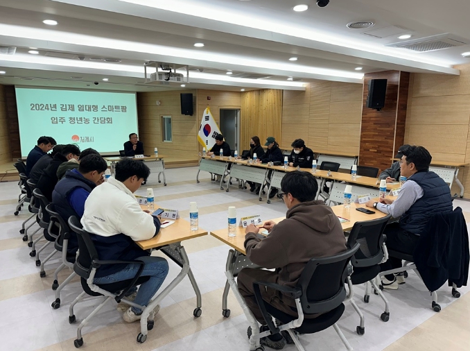 시는 지난 21일 김제 스마트팜 혁신밸리 지원센터에서 임대형 스마트팜 청년농 이후찬 대표를 비롯한 청년농 29명이 참석한 가운데 간담회를 가졌다고 밝혔다.