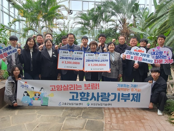 이날 보성군 농업기술센터는 고흥군을 직접 방문해 각 직원 32명씩 64명이 상호기부하는 방식으로 고향사랑기부금을 전달했다.