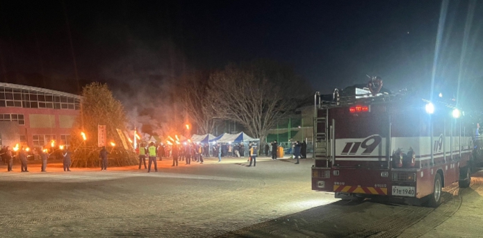 ![]() 지난해 정월대보름 행사장 소방차량 근접배치 |