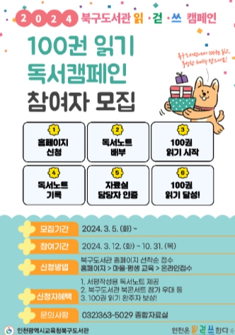 ![]() 인천광역시교육청북구도서관, 100권 읽기 독서캠페인 참여자 모집 |