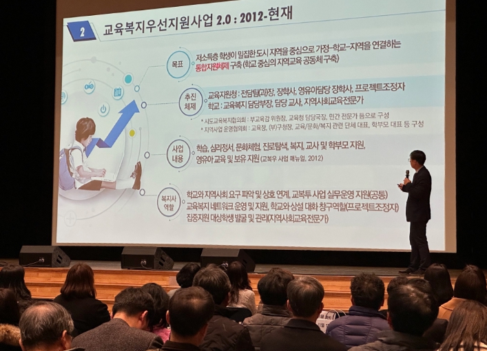행사는 ‘교육복지우선지원사업 3.0 – 과거, 현재, 그리고 미래’를 주제로 한 이상돈 부교육감의 기조 강연을 시작으로 2024년 사업 기본계획 안내, 운영 사례 공유 순으로 진행했다.