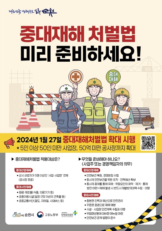 ![]() 순천시, 중대재해처벌법 확대 시행에 따른 전방위 홍보 총력 |