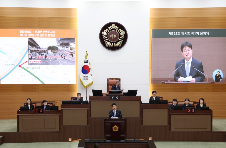 김 의원은 ‘경의선숲길 연남동 구간 종점부’와 ‘홍제천 중류변’ 산책로 사이가 계단과 횡단보도로 단절되어 있어 교차 이용하는 시민이 거의 없는 점을 지적하며, 이를 해결하기 위한 방안으로 보행교를 신설을 제안했다.