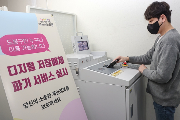 ![]() 도봉구 주민이 도봉구 디지털 저장매체 파기 서비스를 이용하고 있다. |