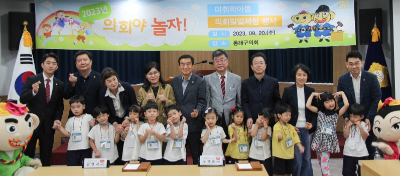 어린이 의회 일일체험 행사는 자라나는 우리 아이들에게 지방자치와 지방의회에 대한 이해를 돕고자 마련된 행사로, 의사봉 3타 체험, 안건 검토 체험 등 실제 의회 활동을 경험하고, 어린이들의 눈높이에서 의견을 듣고 나눌 수 있는 체험 위주로 진행한다. 특히 이날 체험에는 동래구 캐릭터인 뚜기·뚜미가 함께해 재미와 흥미를 더하게 된다. 이번 어린이 의회 일일체험은 동래센트럴파크하이츠 다함께 돌봄센터 아동 26명이 참가해 더욱 의미 있는 시간을 보낼 예정이다.