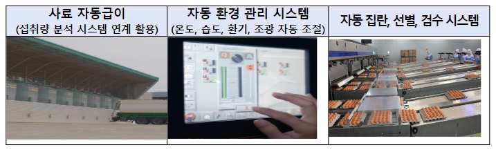 이번에 방문한 축산농장(가농바이오)은 총 8개 사육동에서 어미닭 등 160만마리를 기르며 하루평균 90만개의 계란을 생산하는 국내 최대규모의 산란계 농장이다. 특히, 해당 농장은 축산데이터와 연계한 정보통신기술(ICT) 장비를 활용해 사육환경과 사료 제공량을 원격 정밀제어해 연 평균 15억원의 사료비를 감축하고 생산된 계란의 이송·검사·분류·세척 과정을 자동화해 관련 노동력의 75%를 절감하고 있다.