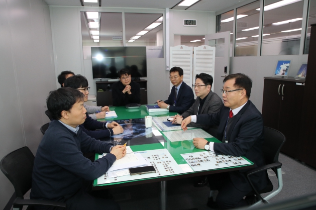 ![]() 홍남표 창원시장은 박학희 산업통상자원부 경제자유구역기획단 혁신지원팀장(과장)과 의견을 교환하고 있다. |