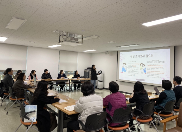 이날 간담회에는 보건소, 시청 안전총괄과와 청년아동과, 청년 공간 e-room, 청소년상담복지센터, 청강문화산업대학교, 한국관광대학교 등이 참석하여 청년 정신건강 현황과 조기 발견 및 개입의 필요성에 대해 논의하고 협력 방안을 논의했다.