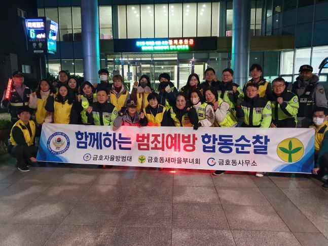 이혜숙 금호동장은 “최일선에서 금호동의 안전을 위해 솔선수범해 활동해주시는 금호자율방범대와 새마을부녀회의 노고에 진심으로 감사드린다”며 “앞으로도 방범순찰활동에 보람을 느낄 수 있도록 필요한 지원을 아끼지 않겠다”고 밝혔다.