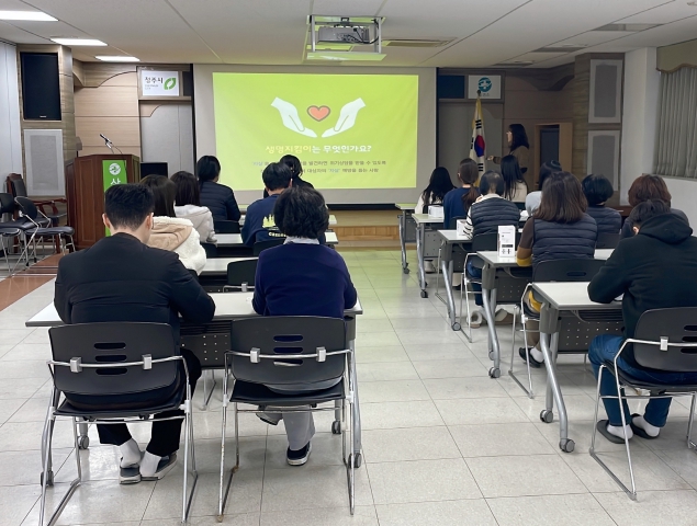 상당정신건강센터와 함께하는 생명지킴이 양성 교육은 생명 존중에 대한 이해, 자살 고위험군 조기 발견을 위한 언어적·신체적·상황적 자살위험 신호 인지, 생명지킴이 역할의 중요성, 발견된 자살 고위험군 연계 가능 기관 안내 등으로 진행된다.