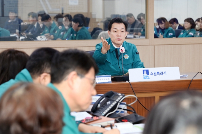 23일 수원시 재난안전상황실에서 열린 ‘의사 집단행동에 따른 보건의료 재난 관련 재난안전대책본부 회의’를 주재한 이재준 시장은 “가장 걱정되는 부분은 응급환자, 수술이 시급한 환자가 제때 치료·수술을 받지 못하는 것”이라며 “의료 공백 장기화에 대비해 2주 차, 3주 차, 4주 차 등 시기별 시나리오를 만들고, 그에 맞는 대응 방안을 준비하라”고 강조했다.