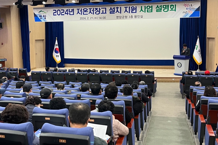 영암군이 21일 군청에서 ‘2024년 농산물 저온저장고 설치사업 시공업체 설명회’를 개최했다.