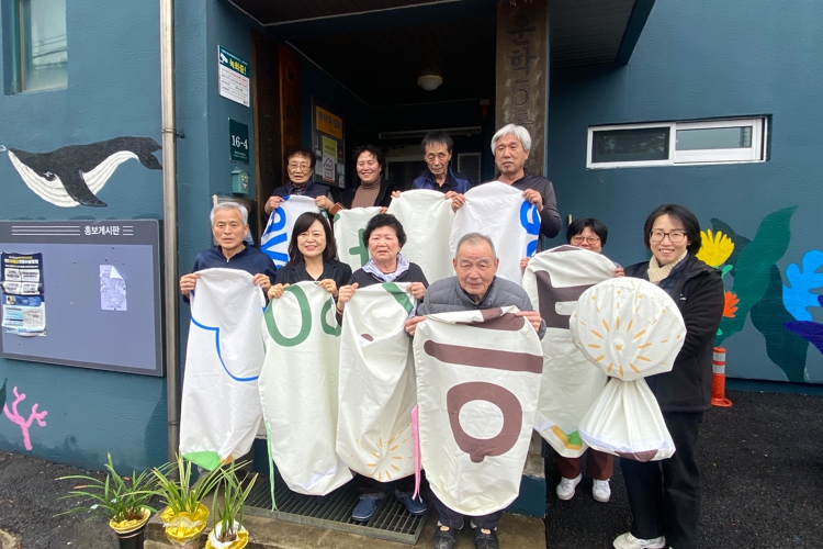센터 강사들은 지난해 10월에 열린 ‘2050 탄소중립 가을피크닉’에 쓰인 현수막을 세탁해 제작한 총 16개의 선풍기 커버를 지난 19일 운학 5통 삼삼경로당에 전달하기도 했다.