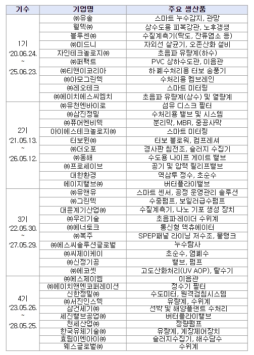 ![]() 혁신형 물기업 지정 현황(40개 기업) |