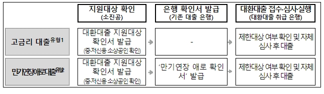 다만, 은행권의 만기연장이 어려운 대출을 대환받고자 하는 경우 대환대출 취급은행 방문 전에 대환 대상이 되는 대출을 실행한 은행에서 ‘만기연장 애로 확인서’를 발급받아 대환대출 취급은행에 제출해야 한다.