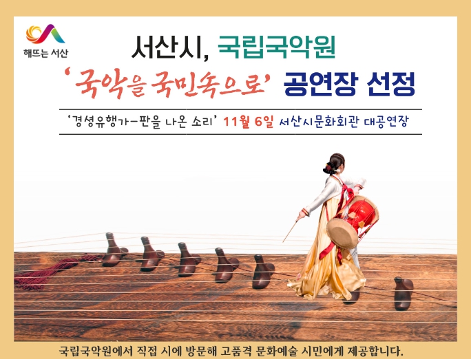 ![]() 서산시, 국립국악원 ‘국악을 국민속으로’ 공연장 선정 홍보물 |